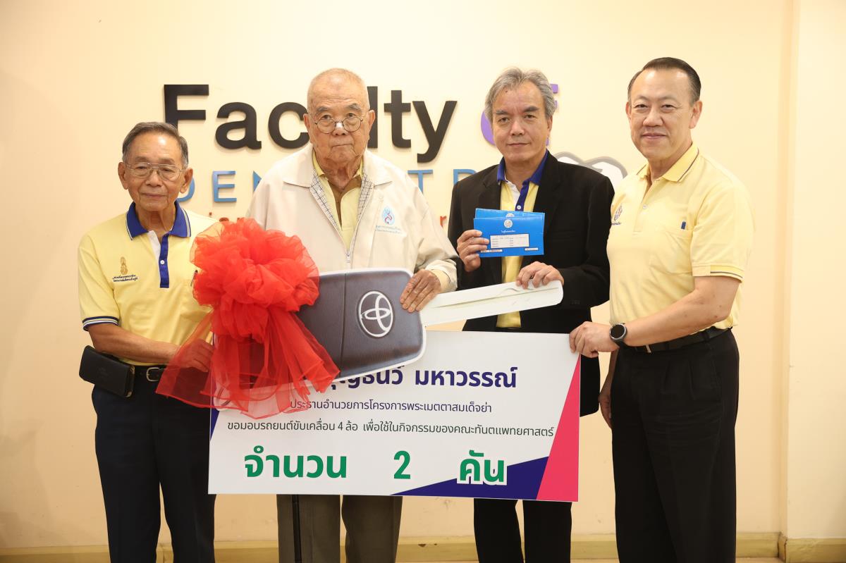คุณบุญธันว์ มหาวรรณ์ ประธานกรรมการอำนวยการโครงการพระเมตตาสมเด็จย่า ได้มอบรถยนต์ขับเคลื่อน 4 ล้อ จำนวน 2 คัน แก่คณะทันตแพทยศาสตร์ มหาวิทยาลัยเชียงใหม่ เนื่องในวันทันตสาธารณสุขแห่งชาติ ประจำปี 2568 เพื่อใช้ในการดำเนินกิจกรรมบริการสังคมและโครงการต่างๆ ของคณะฯ อันเป็นส่วนหนึ่งในการสืบสานพระราชปณิธานแห่งความเมตตาและการให้ที่ไม่สิ้นสุดในการนี้ รศ.ทพ.ทะนง ฉัตรอุทัย อดีตคณบดี ศ.ทพ.ดร.สิทธิชัย วนจันทรรักษ์ อดีตคณบดี และ ผศ.ทพ.ดร.นฤมนัส คอวนิช คณบดีคณะทันตแพทยศาสตร์ มหาวิทยาลัยเชียงใหม่ ร่วมรับมอบรถยนต์ในบรรยากาศอบอุ่น เป็นกันเอง ท่ามกลางคณะผู้บริหาร อาจารย์ และบุคลากรของคณะฯ ที่มาร่วมเป็นสักขีพยานในโอกาสอันทรงคุณค่านี้